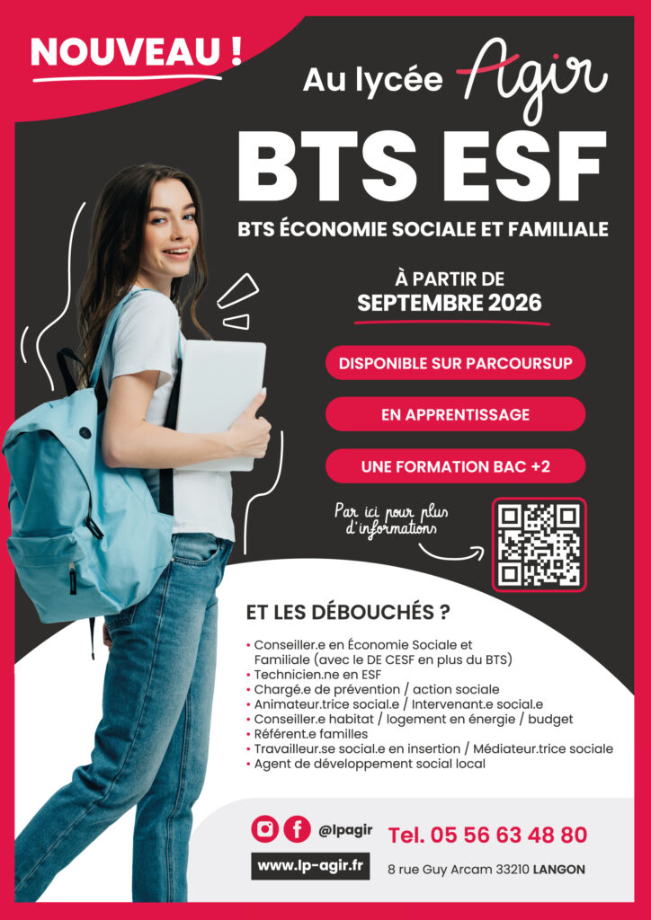 Le Lycée AGIR de Langon ouvre son BTS Économie Sociale et Familiale en apprentissage !